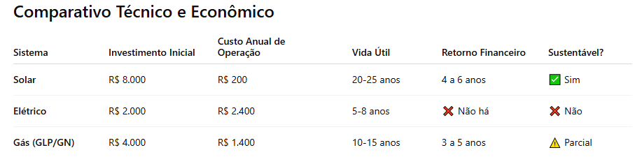 - Comparativo entre eles com base em custo inicial, consumo e manutenção;
